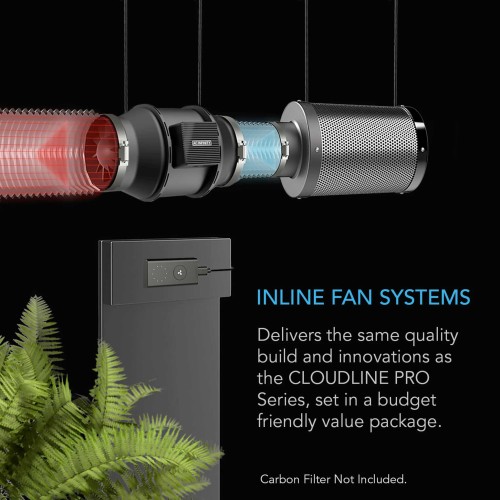 The speed controller enables you to set the duct fan’s speed to optimal noise and airflow levels for various environments. This inline fan is equipped with the CLOUDLINE Series’ same EC-motor that is precisely controlled using PWM (Pulse Width Modulation), which enables it to run smoothly at extremely low RPM speeds without generating motor noise. Ten speed options are available with power switch and backup memory. This model can be connected to the following smart controllers to share the same programming and power source as other EC-motor CLOUDLINE fans: