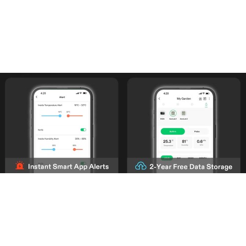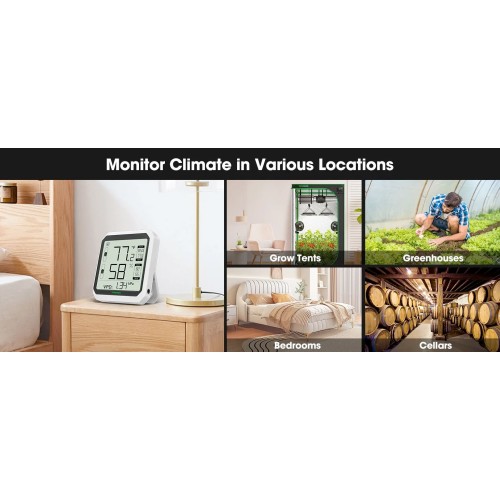 • Remote Control & Smart App Alerts: Connect to Vivosun App via Bluetooth to monitor temperature, humidity, and VPD data remotely; Receive instant notifications when temperatures or humidity exceed your set levels, allowing you to effectively manage the climate in various locations such as your bedroom, greenhouse, grow tent, basement, or baby room