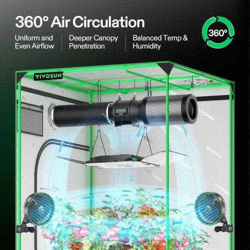 • Integrated Circulation Fan: The centrally located circulation fan in the LED optimizes airflow, reaching areas you may otherwise miss; It enhances direct air entry into the canopy, effectively balancing temperature and humidity; To access more advanced functions, pair with the Vivosun E42/E42A/E25 controller.