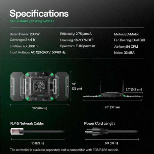 AeroLight Wing AW200 Tunable Spectrum LED Grow Light 200W by VIVOSUN