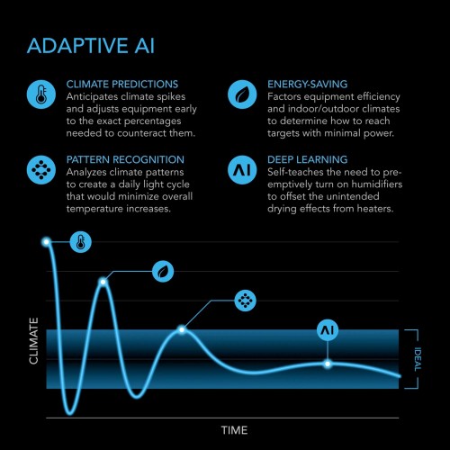 - Features an AI-powered controller that analyzes climate patterns and anticipates spikes to program the inline fan dynamically.