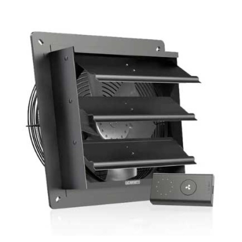 - A high-airflow shutter fan designed to remove stale air and ventilate greenhouses, garages, and more.