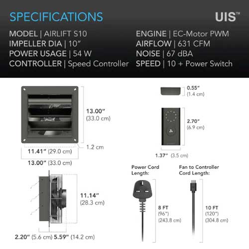 Airlift S10, Shutter Exhaust Ventilation Fan 10", Speed Controller by AC Infinity