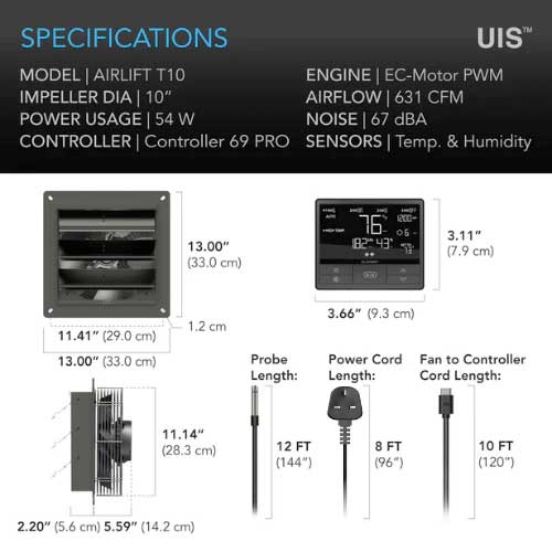 Airlift T10, Shutter Exhaust Ventilation Fan 10", Temperature Humidity Controller by AC Infinity