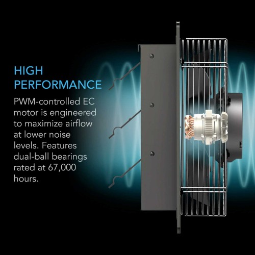 Features steel shutters that are weather and corrosion-resistant, and automatically close when not in use. The blades and impeller are constructed of lightweight aluminum, weight-balanced to reduce vibrations. Utilizing an innovative EC motor that is controlled electronically using PWM (Pulse Width Modulation), the fans can maximize airflow while reducing noise and power consumption. The fully enclosed motor is also permanently lubricated and houses dual-ball bearings that are rated at 67,000 hours. The unit is IP-44 rated to be highly resistant to dust and liquids and performs well even in harsh environments.