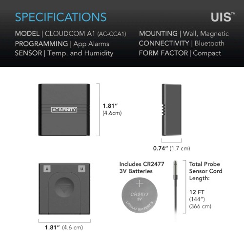 AC Infinity Cloudcom A1, Mini Smart Thermo-Hygrometer With Data App, 12 Ft. Sensor Probe by AC Infinity