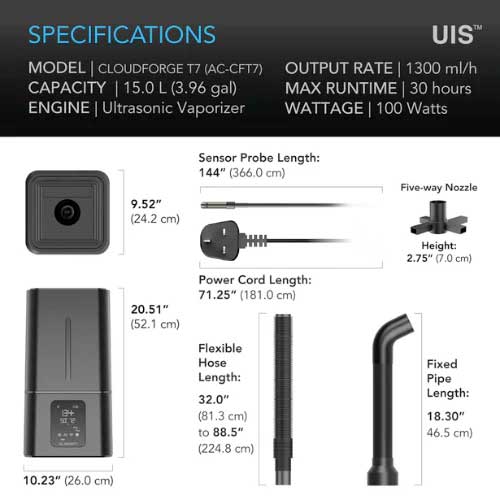 Cloudforge T7 Gen 2, Environmental Plant Humidifier, 15L, Smart Controls, Targeted Vaporizing by AC Infinity