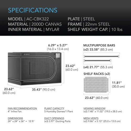 Tags: AC Infinity, Cloudlab, 322, Propagation, Grow Tent, 60 x 60 x 90 cm