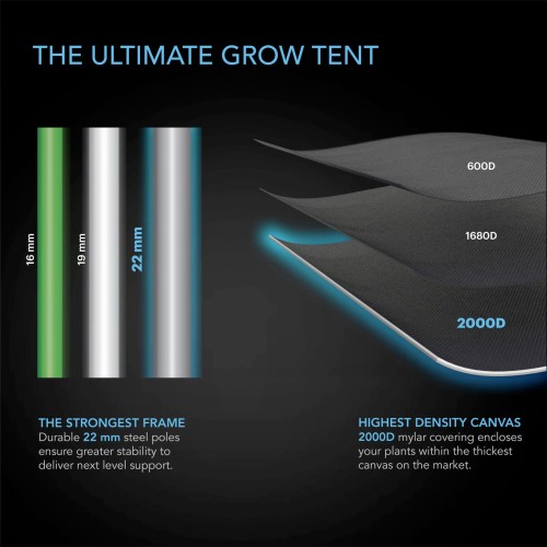 - Features durable frame that uses 50% thicker steel poles and carries 2x more weight than standard grow tents.