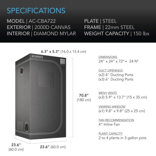 Tags: AC Infinity, Cloudlab, 722, Grow Tent, 60 x 60 x 180cm