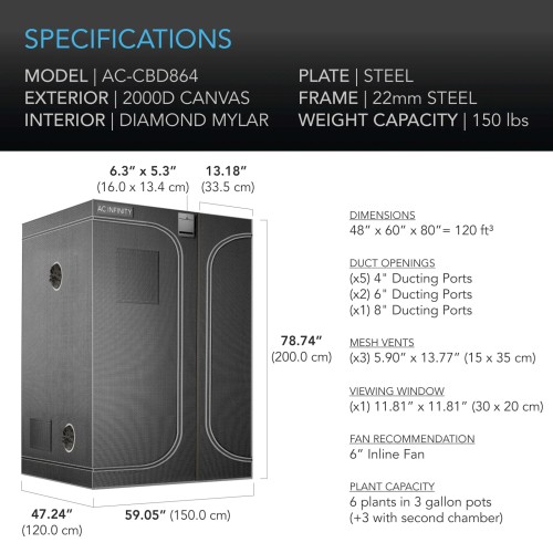 Tags: AC Infinity, Cloudlab, 844D, Grow Tent, 150 x 120 x 200cm