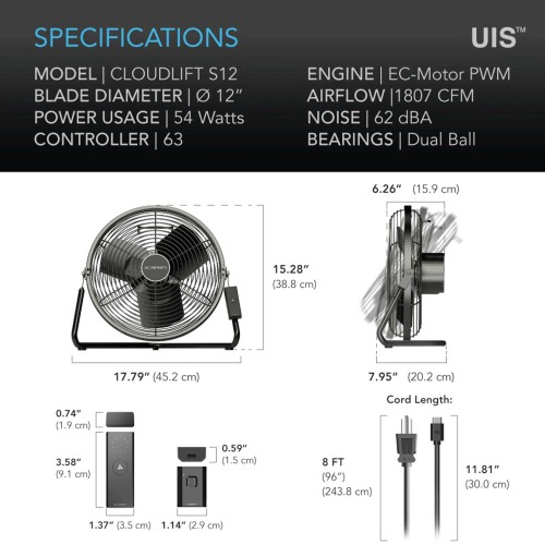 Tags: Cloudlift S12, Floor Fan, Wall Fan, 12", 315mm