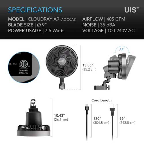 Tags: AC Infinity, Cloudray, 9", Clip Fan