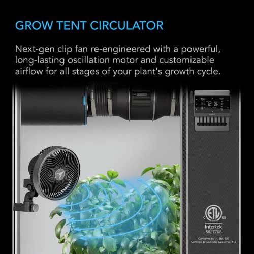 - Next-gen clip fan re-engineered for longer-lasting, tailored circulation in grow space environments.