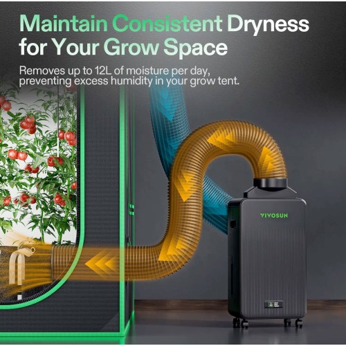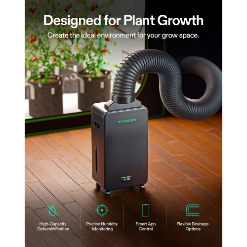 Superior Humidity Control: Features a high-performance compressor that delivers up to 12L/day of dehumidification; Equipped with high-precision sensors that monitor temperature, humidity, and VPD to maintain the optimal humidity level for your grow space.