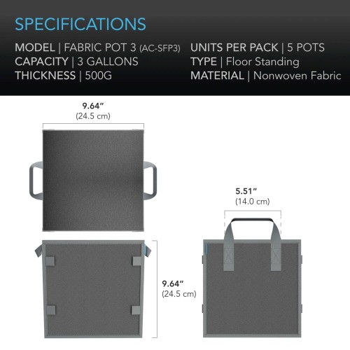 Tags: AC Infinity, Heavy Duty Fabric Pots, Square, Reusable