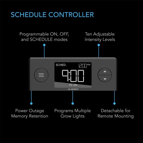 - Features a digital controller with ten light intensity levels and daily schedule programming.