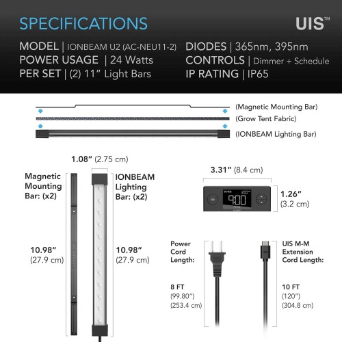 Ionbeam U2, Targeted Spectrum Uv Led Grow Light Bars, 11-Inch by AC Infinity