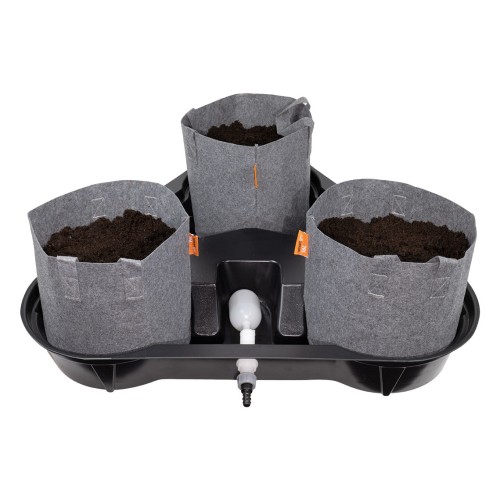 The MegaPot MultiPot 3 (Complete) is the ideal compact system for growers who know that four plants is just one too many. This MultiPot comes in a fixed 16L size, with the option to choose from 12L or 16L cloth pots.