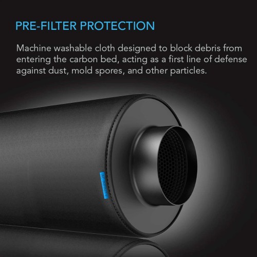 A clothed filter designed to lengthen the lifespan of your carbon filter by keeping debris from entering the charcoal bed. Each form-fitting prefilter is made of polyester capable of blocking particles like dust, lint, pollen, and hair while allowing complete air passthrough. This ensures that your carbon filter properly traps odours in its activated charcoal and refines the air when used with an inline duct fan. The breathable prefilter cloth is machine washable and is long-lasting, reusable up to six months between cleanings. Vacuum the prefilter to remove the dust before throwing it into the washer, and hang dry the cloth to prevent shrinking.